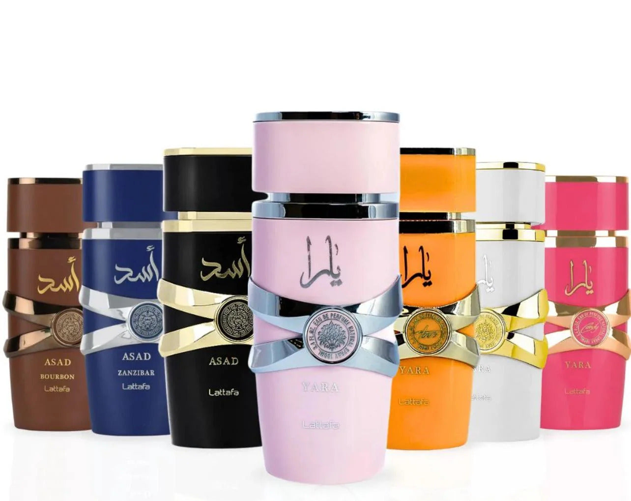 Lattafa 7 pieces Value Pack Yara, Asad, Asad Bourbon, Asad Zanzibar, Yara Moi, Yara Tous, Yara Candy 3.4oz SET